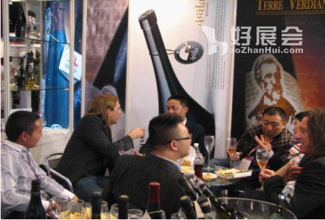 圖:第七屆廣州國際名酒展某展位,海外展商與中國進口酒經銷商親密洽談。