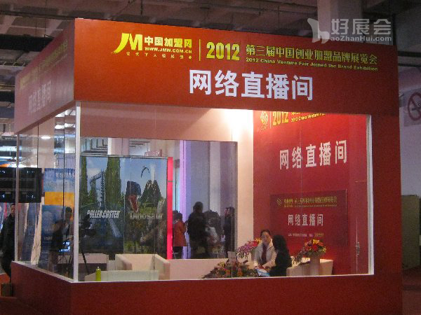 2012年2月18日,“2012第三屆中國創(chuàng)業(yè)加盟品牌展覽會”在中國國際展覽中心(北京三元橋)隆重召開。本次展會匯聚了18大行業(yè)等眾多知名品牌參展,吸引了數萬投資創(chuàng)業(yè)者前來參觀。而展覽會的網絡直播間更是矗立在展會現場,格外顯眼。