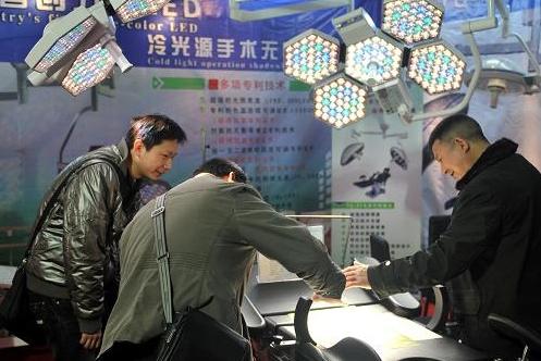 3月13日,第13屆中國醫(yī)療器械設(shè)備展上,顧客在查看無影燈的顯示效果。當(dāng)日,第13屆中國醫(yī)療器械設(shè)備展在貴陽開展。據(jù)了解,本屆展會(huì)吸引了來自國內(nèi)外300余家醫(yī)療器械生產(chǎn)企業(yè)及代理商參展,展出內(nèi)容包括新型醫(yī)療器械、診斷治療設(shè)備、醫(yī)療輔助設(shè)備等。(來源:新華網(wǎng))