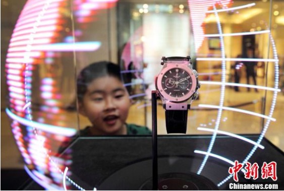 5月7日,用激光投影展示的手表吸引了觀眾的目光。當天,以“融合的藝術”為主題的“宇舶攜手法拉利中國20周年”全國巡展首站在南京德基廣場舉行,與市民共同分享全球知名奢侈品宇舶表中蘊含的傳統(tǒng)腕表技藝與現(xiàn)代高科技融合之深意。(來源:中新網)