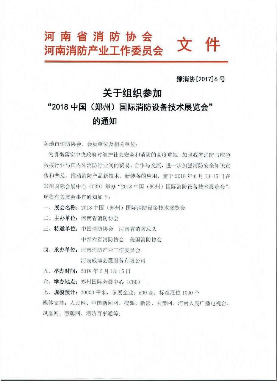 - 沈陽(yáng)市消防行業(yè)服務(wù)協(xié)會(huì):關(guān)于組織參加2018中國(guó)鄭州消防展的通知