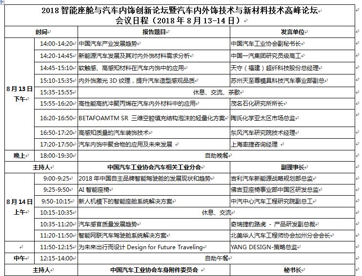 2018全球汽車內外飾技術創(chuàng)新與新材料新技術論壇(8月13-14日)
