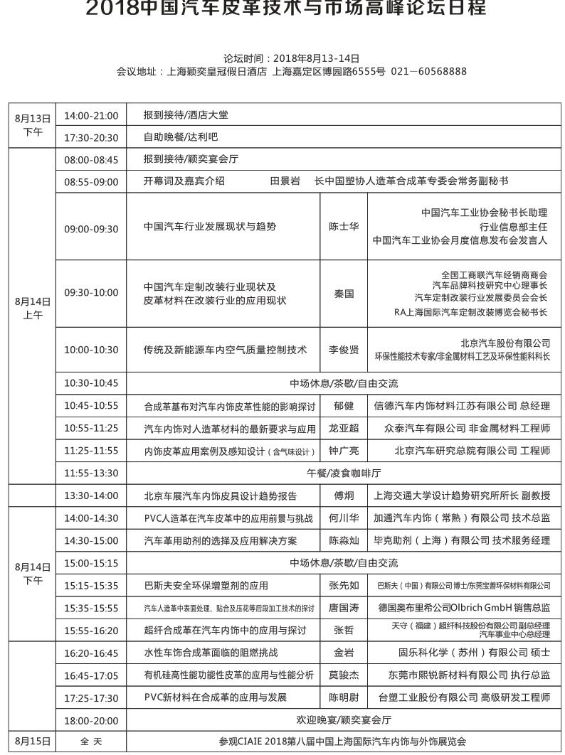 2018第三屆中國汽車皮革技術與市場高峰論壇(8月13-14日)