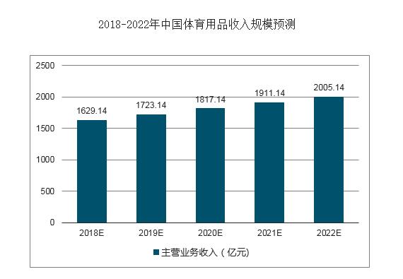 隨著生活水平的提高,人們的健康觀念越來越強,運動健身受到越來越多人們的喜愛。相關數(shù)據(jù)顯示,2013-2017年我國體育用品行業(yè)收入和利潤都在不斷增長,五年年均復合增長率分別為7.64%和9.37%,增長十分迅速。而2018年1-4月我國體育用品行業(yè)主營業(yè)務收入435.1億元,利潤總額19億元。并且,在國家相關政策的大力支持引導下,體育用品行業(yè)將得以快速發(fā)展,預計到2022年體育用品行業(yè)收入規(guī)模將進一步突破2000億元。