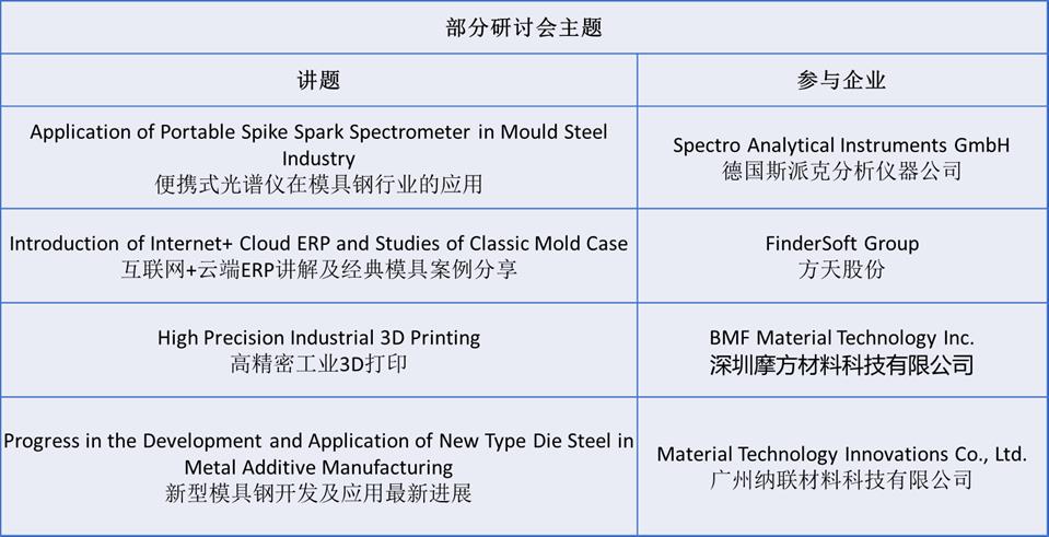 Asiamold一直致力于為華南地區(qū)制造業(yè)提供與3D打印、金屬加工及模具相關(guān)的先進(jìn)技術(shù)、產(chǎn)品及解決方案,配合內(nèi)容全面的研討會(huì)及峰會(huì)以豐富參展商和觀眾的與會(huì)體驗(yàn)。2019年的廣州國(guó)際模具展覽會(huì)研討會(huì)將于展會(huì)首天舉辦,為本地及海外行業(yè)專家提供機(jī)會(huì)分享最新科研成果。
