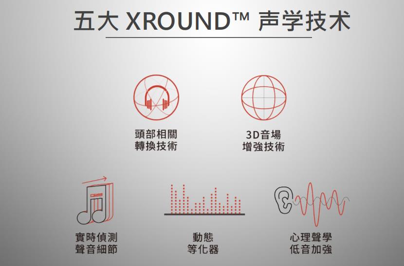 過往的家庭劇院往往需要龐大的空間和不斐的預(yù)算才能夠裝設(shè),同時無法隨身連接手機帶著走,隨時隨地體驗聲音帶來的深層感動。XROUND 演算法突破時間與空間種種限制,透過獨家音訊演算技術(shù)使普通雙聲道喇叭或耳機能夠擁有 360 度的環(huán)繞音效體驗感,并同時運用智慧演算功能以十萬分之秒的速度高速更新運算,搭配心理聲學(xué)低頻加強與智慧動態(tài)等化器的技術(shù),表達聲音更多的細節(jié),在電影和游戲中,提供使用者更豐富的臨場體驗感;不論在地鐵,公交,公寓,宿舍或是騎著單車,都能無縫接軌專屬的體驗。