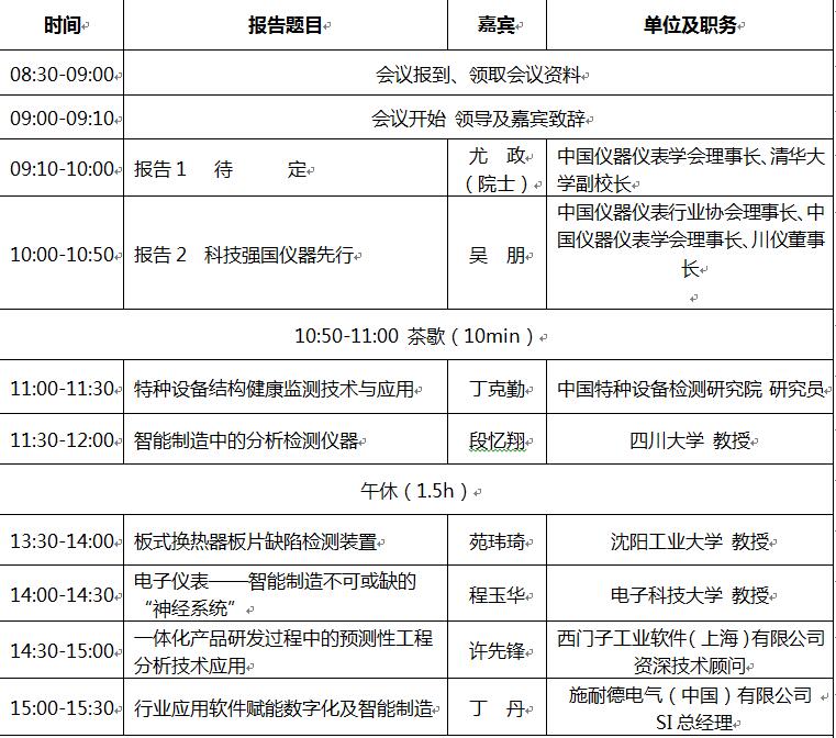 2019第三屆中國(guó)儀器儀表與智能制造高峰論壇議程-成都