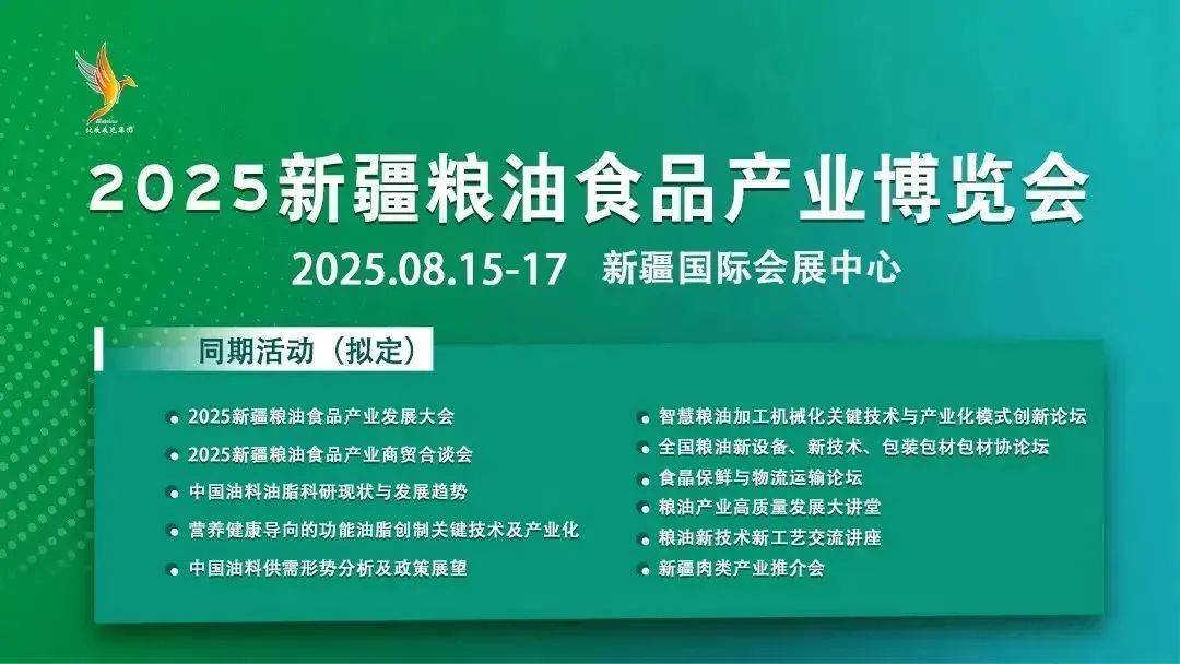 在政策紅利持續(xù)釋放、市場(chǎng)需求旺盛的背景下,2025 新疆糧油食品產(chǎn)業(yè)博覽會(huì)順勢(shì)而為,緊扣產(chǎn)業(yè)發(fā)展需求,致力于為行業(yè)搭建高質(zhì)量交流平臺(tái)。展會(huì)將于 2025 年 8月15-17日 在新疆國(guó)際會(huì)展中心盛大啟幕,將全方位展現(xiàn)糧油食品產(chǎn)業(yè)的創(chuàng)新成果與發(fā)展活力。?