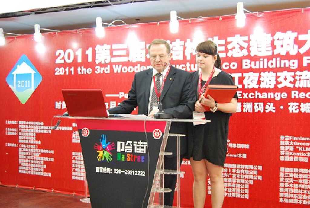 3月30日至4月1日,俄羅斯木結(jié)構(gòu)住宅協(xié)會(huì)(AWH)代表團(tuán)首次參加2011第三屆廣州國際木屋木結(jié)構(gòu)產(chǎn)業(yè)展。