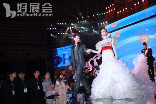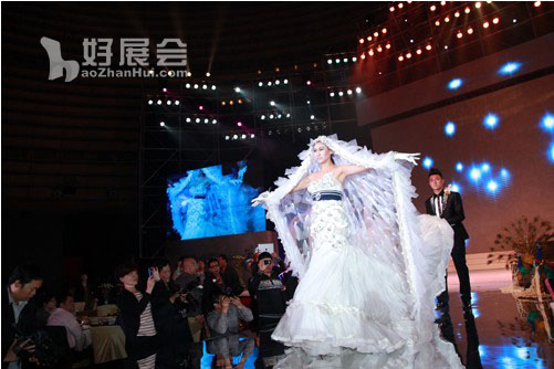12月7日晚上,在會議閉幕式上,舉辦了2012春展婚禮婚紗潮流趨勢發(fā)布會,由專業(yè)模特穿著各種新款婚紗在業(yè)界同仁面前作了展示。廣西永恒集團(tuán)還投入百萬巨資,選用真人布置實(shí)景,作了一場婚慶典禮的表演,讓參會的代表們領(lǐng)略了時(shí)尚婚禮、潮流裝飾的風(fēng)采,也引領(lǐng)業(yè)界將婚紗攝影與婚慶典禮、喜宴服務(wù)結(jié)婚起來,為滿足人們?nèi)罕姴粩嗵岣叩奈镔|(zhì)文化需求作出貢獻(xiàn)。