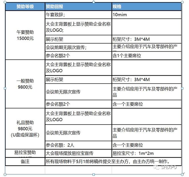 為了給部分汽車(chē)表面工程相關(guān)的供應(yīng)商提供一個(gè)精準(zhǔn)展示推廣的機(jī)會(huì),現(xiàn)提供以下贊助方案: