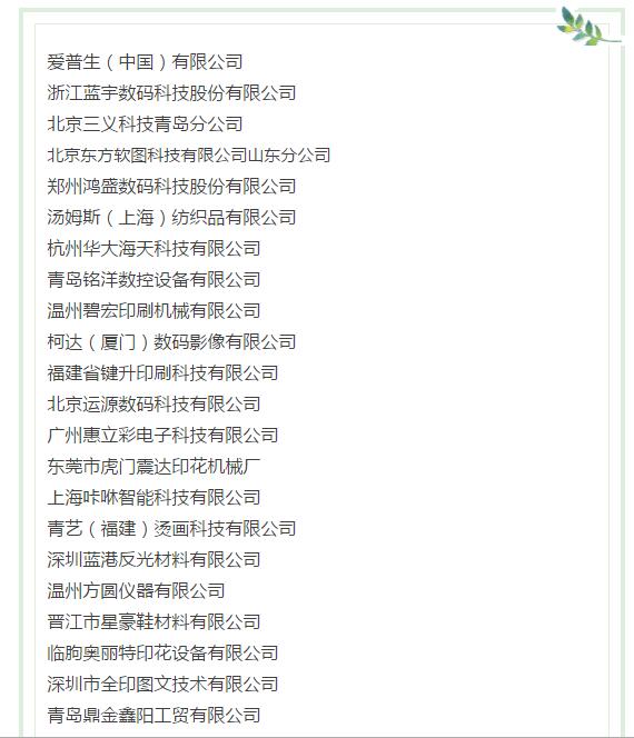 1.印花設(shè)備:數(shù)碼印花設(shè)備、傳統(tǒng)印花設(shè)備、全自動(dòng)印花機(jī)、平網(wǎng)印花機(jī)、圓網(wǎng)印花機(jī)、制版設(shè)備、烘道、印花跑臺(tái)、燙畫機(jī)、燙金機(jī)、數(shù)碼噴射印花系統(tǒng)、電腦一體化噴墨制網(wǎng)系統(tǒng)、染整設(shè)備等。