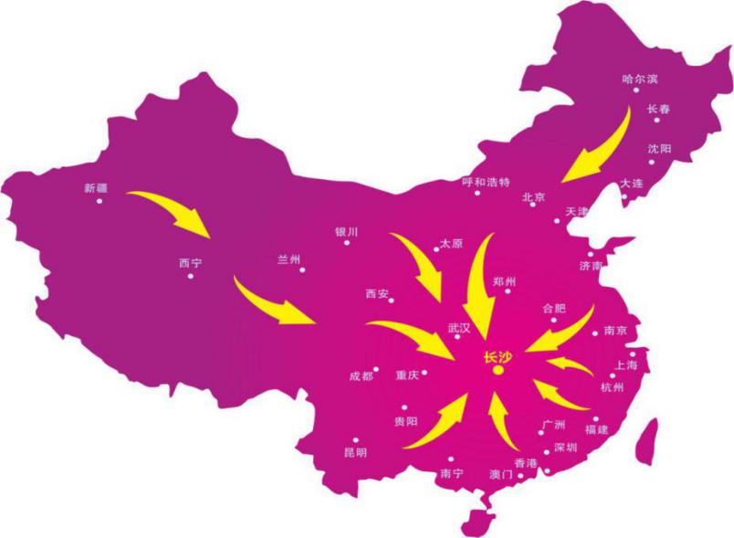 1.長沙作為湖南省省會,承東啟西,連南接北綜合競爭力居全國前列,正在逐發(fā)展成為中國經(jīng)濟主軸的新亮點和商貿(mào)物流新中心,被譽為進軍中部地區(qū)橋頭堡城市。以長沙為中心向東、西、南、北圍繞輻射長江中游武漢城市圈、長株潭城市群、環(huán)鄱陽湖經(jīng)濟圈等30座城市,是國內(nèi)品牌及眾多國際品牌開拓中部的首選市場;