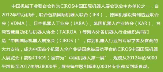 一大亮點(diǎn)是大會(huì)聯(lián)合全球四大機(jī)器人展之一,最早最專業(yè)展覽——中國國際機(jī)器人展覽會(huì)同時(shí)同場,展覽總面積達(dá)56000平米,全世界參觀人數(shù)預(yù)計(jì)將超過100000人,將打造中國最具規(guī)模和最具影響力的首屈一指的全球無人系統(tǒng)盛會(huì)。