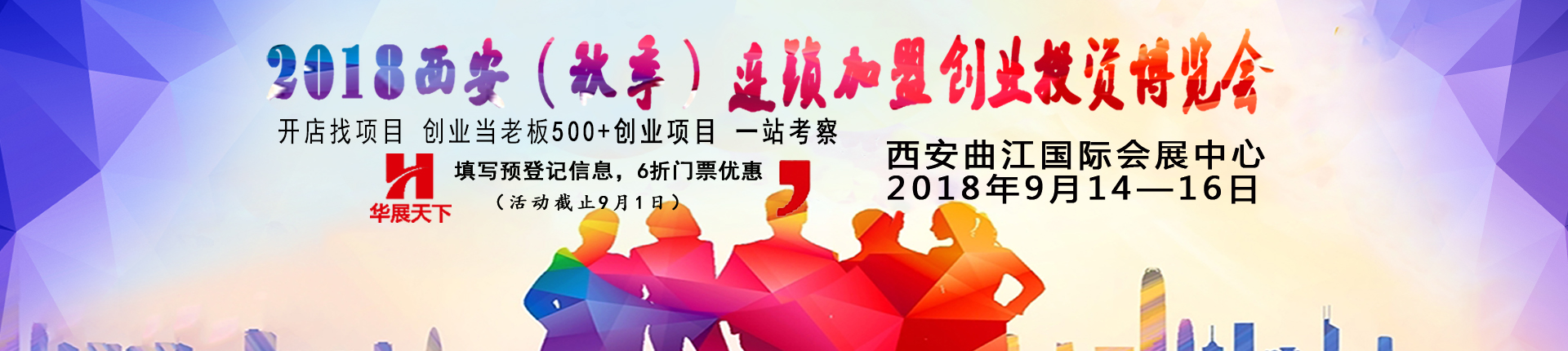 2018年9月14日-16日在西安曲江國(guó)際會(huì)展中心舉辦“2018西安(秋季)連鎖加盟創(chuàng)業(yè)投資博覽會(huì)”,展會(huì)將以繼續(xù)促進(jìn)創(chuàng)業(yè)帶動(dòng)就業(yè)、創(chuàng)業(yè)致富為主要目的,為我們的投資者帶來(lái)更多更好的機(jī)會(huì)。