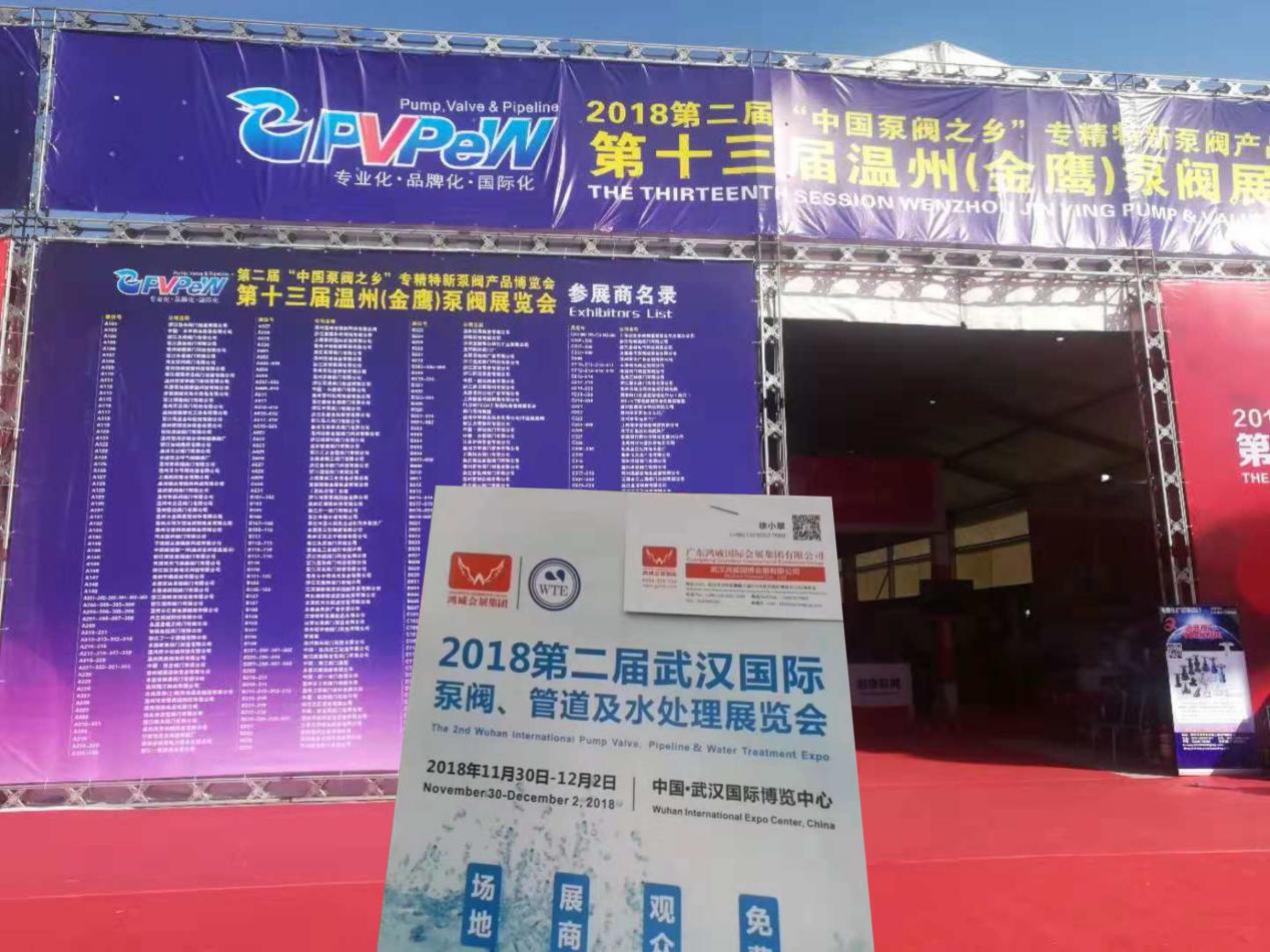 10月26日,2018武漢水科技博覽會暨泵閥、管道及水處理展覽會組委會一行人參加2018溫州(金鷹)泵閥展覽會,并與參會的企業(yè)進行了交流,派發(fā)、宣傳11月30日的展會,并征詢多名企業(yè)代表、行業(yè)專家對泵閥門類型的展會的意見。向與會參展商以及參觀觀眾發(fā)送武漢國際水科技博覽會暨泵閥、管道及水處理展覽會招商函及參觀門票,現(xiàn)場反響良好。