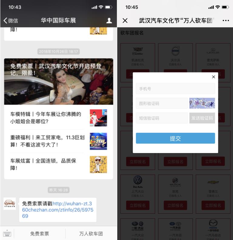 ①進(jìn)入“華中國際車展”官方微信,點(diǎn)擊菜單“萬人砍車團(tuán)”,選擇自己的意向品牌并報(bào)名參與活動(dòng)。(注意:一個(gè)人僅能參與一個(gè)品牌的砍車團(tuán)活動(dòng),請慎重選擇!)