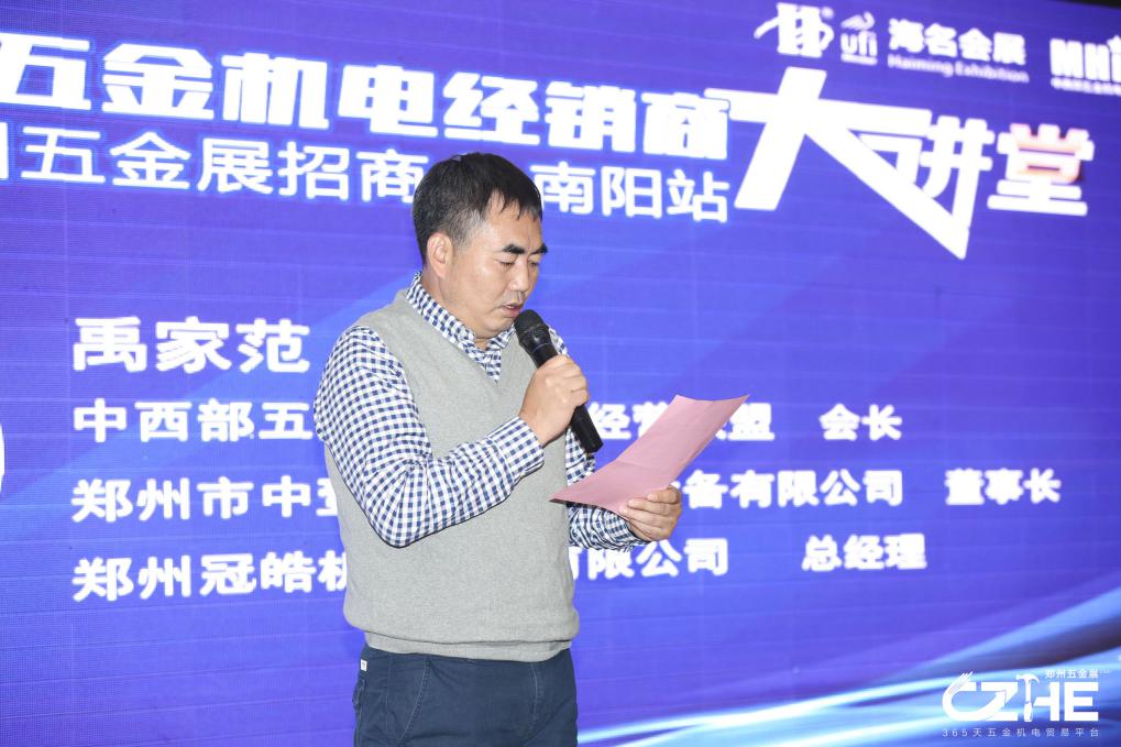 中西部五金機(jī)電創(chuàng)新經(jīng)營(yíng)聯(lián)盟常務(wù)副會(huì)長(zhǎng)、南陽(yáng)鑫盛機(jī)電柴向陽(yáng)柴總作為南陽(yáng)地區(qū)優(yōu)秀經(jīng)銷(xiāo)商代表上臺(tái)致辭歡迎。柴總首先代表南陽(yáng)地區(qū)五金機(jī)電經(jīng)銷(xiāo)/批發(fā)商對(duì)于本次經(jīng)銷(xiāo)商大講堂選址南陽(yáng)表示歡迎,柴總講到南陽(yáng)作為豫鄂陜交界地區(qū)區(qū)域性中心城市、國(guó)家區(qū)域中心城市、中國(guó)首批新能源示范城市、高新技術(shù)產(chǎn)業(yè)開(kāi)發(fā)城市,海名會(huì)展·鄭州五金展,一個(gè)擁有優(yōu)秀的產(chǎn)業(yè)鏈資源,匯聚行業(yè)前沿觀點(diǎn)、趨勢(shì)的中西部地區(qū)五金機(jī)電行業(yè)最具價(jià)值的綜合服務(wù)平臺(tái)。