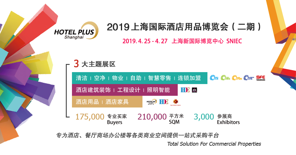 2019新國際博覽中心再度全館齊放,打通行業(yè)壁壘,共享210,000平方米展出面積,175,000觀眾資源,近3,000優(yōu)質(zhì)海內(nèi)外廠商。同期展會貫穿酒店工程、清潔產(chǎn)品、物業(yè)保潔、建筑裝飾、商業(yè)智能化設(shè)備等行業(yè),定位于中高端產(chǎn)品,為全球買家提供全系列解決方案和信息交流與分享的機(jī)會,為酒店、餐廳、商場辦公樓等各類商業(yè)空間提供服務(wù)及整體解決方案的一站式采購平臺。