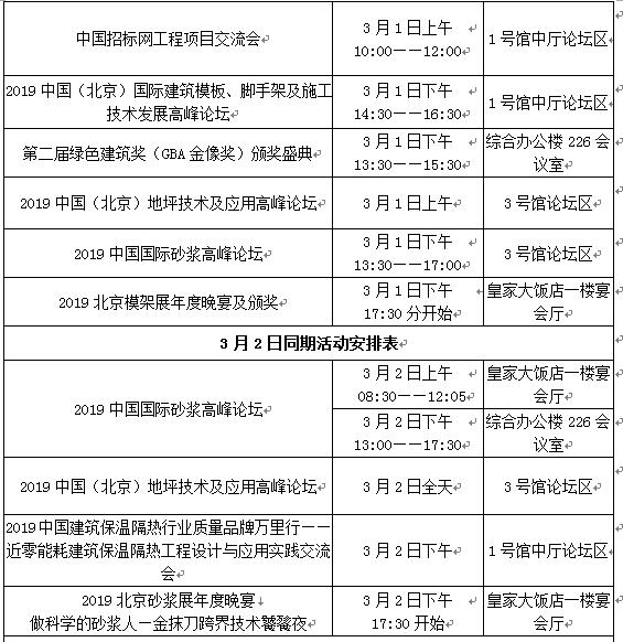 ConstrucTech 2019建筑四新展召開期間還將舉辦多場行業(yè)活動,包括:2019中國模板腳手架產(chǎn)業(yè)發(fā)展峰會、中國砂漿周系列峰會、2019中國地坪技術(shù)與應用論壇、2019中國建筑保溫隔熱行業(yè)質(zhì)量品牌萬里行——近零能耗建筑保溫隔熱工程設計與應用實踐交流會、現(xiàn)場施工演示會、工程項目交流會、第二屆綠色建筑獎(GBA金像獎)頒獎盛典、2019北京模架展年度晚宴、2019北京砂漿展年度晚宴、ConstrucTech建筑師設計師對話等近10余場活動。同期活動安排如下: