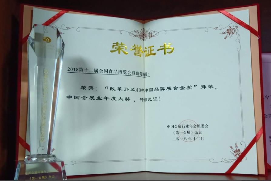 全國食品博覽會(huì)已經(jīng)成功舉辦了12屆,其專業(yè)化、市場(chǎng)化、國際化、綜合化不斷提升,是中國食品領(lǐng)域最具知名度和權(quán)威性的展覽會(huì)之一。在2018年度中國會(huì)展產(chǎn)業(yè)頒獎(jiǎng)盛典上,由中貿(mào)集團(tuán)主辦的“全國食品博覽會(huì)”榮膺“改革開放40年中國品牌展會(huì)金獎(jiǎng)”殊榮。在山東省商務(wù)廳組織開展的第二批山東省品牌展會(huì)評(píng)選中,全國食品博覽會(huì)獲得“山東省品牌展會(huì)”稱號(hào)。這榮譽(yù)不僅是對(duì)展會(huì)走向品牌化的權(quán)威肯定,亦是對(duì)近年來全國食品博覽會(huì)在會(huì)展產(chǎn)業(yè)發(fā)展道路中所做出的突出貢獻(xiàn)和成績(jī)的肯定。