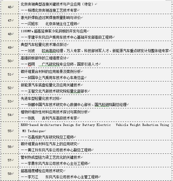 其中,正在與工信部、科技部、廈門金龍、城都大運、中通客車、北汽動力總成、賽麟汽車、漢騰汽車、福特汽車、本田汽車,以及一汽、東風、長安、江淮、上汽等底盤部門匯報和商談參會事項,同時,擬邀請德爾福、西門、麥格納、大陸、延鋒、敏實、奇昊、偉世通、濰柴等全球汽車零部件百強中20多家零部件企業(yè),預(yù)計本次參加汽車輕量化大會的中大型汽車企業(yè)有60多家,全球汽車零部件百強中有50多家零部件企業(yè)。