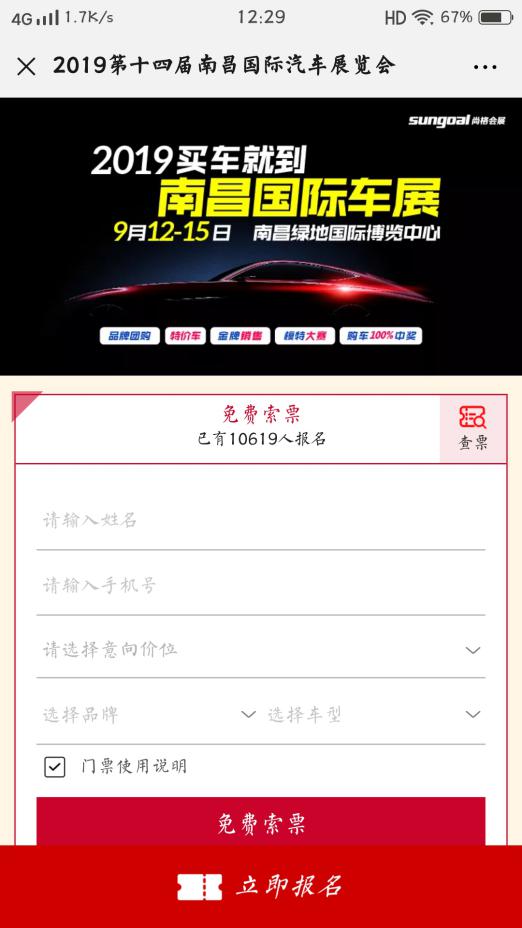 2)免費領(lǐng)取車展門票也可進(jìn)入搶特價車通道,選擇意向的特價車型并點擊立即報名,即可獲得專屬特價車券,保存券號。