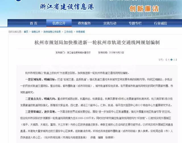 2018年8月21日,浙江省住房和城鄉(xiāng)建設(shè)廳官網(wǎng)上發(fā)布了一則和杭州軌道交通有關(guān)的信息——杭州市以“軌道上的杭州”為發(fā)展總目標,杭州市規(guī)劃局正在加快推進新一輪杭州市軌道交通線網(wǎng)規(guī)劃編制。