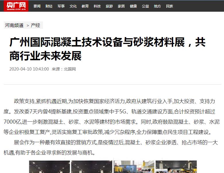 - 近百家知名媒體紛紛報道2020廣州國際混凝土與砂漿展