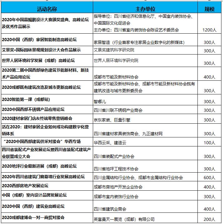 2020成都建博會(huì)八月開(kāi)展,參展品牌、活動(dòng)、參觀團(tuán)搶先看