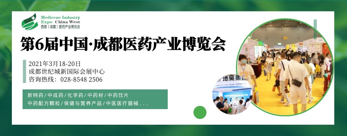 2021年3月18-20日,第6屆中國·成都醫(yī)藥產(chǎn)業(yè)博覽會將在成都世紀城新國際會展中心隆重舉行,再創(chuàng)醫(yī)健行業(yè)盛會!