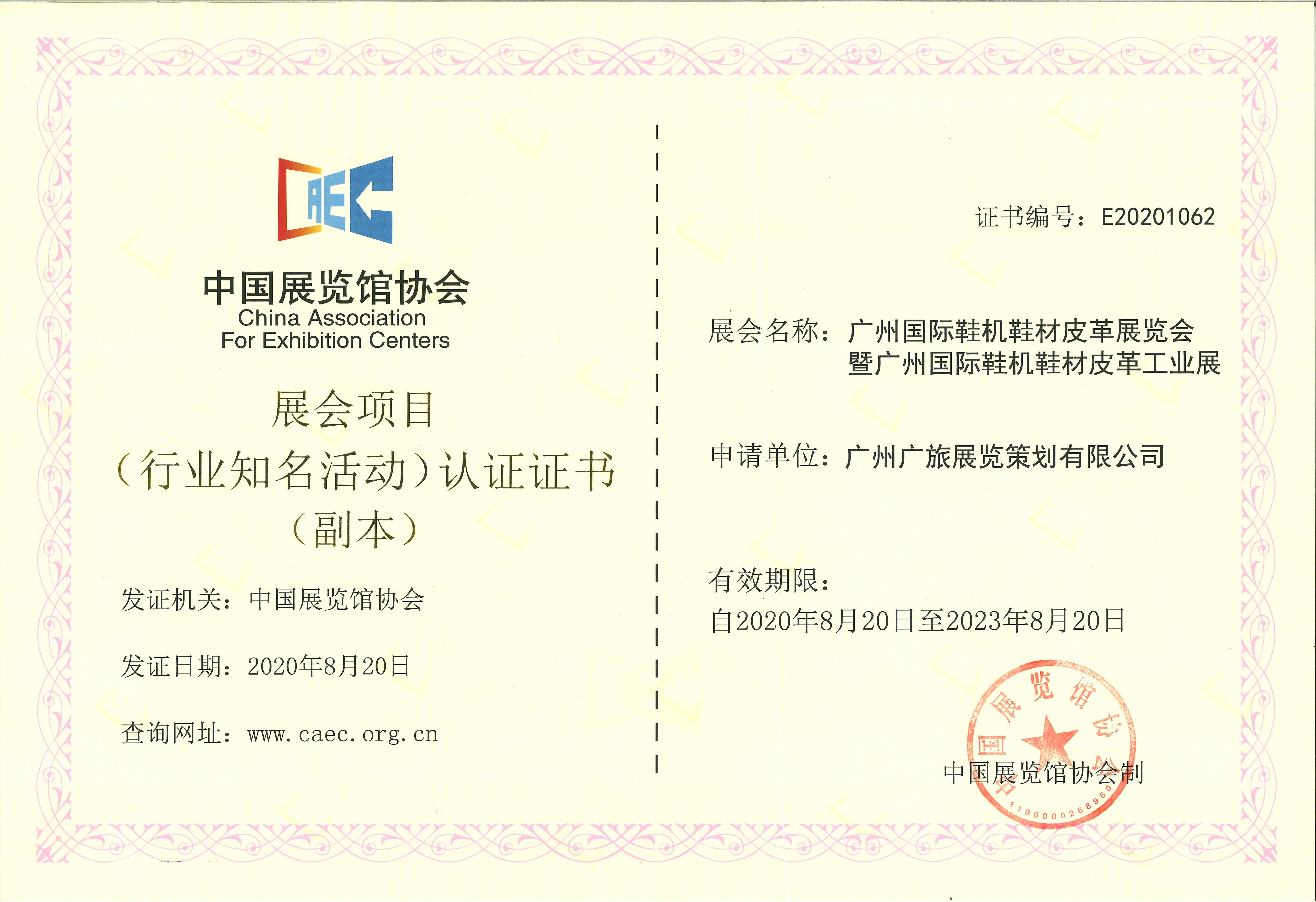 獲中國(guó)展覽館協(xié)會(huì)認(rèn)證2021廣州國(guó)際鞋機(jī)鞋材皮革工業(yè)展再添新榮譽(yù)