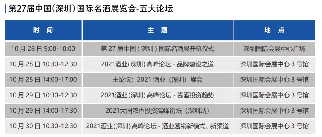 此外, 酒業(yè)(深圳)峰會(huì)、酒業(yè)(深圳)高峰論壇 - 品牌建設(shè)之道、酒業(yè)(深圳)高峰論壇 - 醬酒投資趨勢(shì)、酒業(yè)(深圳)高峰論壇 - 酒業(yè)營(yíng)銷新模式、新渠道等四大論壇都將展現(xiàn)酒業(yè)的前沿信息與風(fēng)向、觀點(diǎn)與價(jià)值的碰撞。