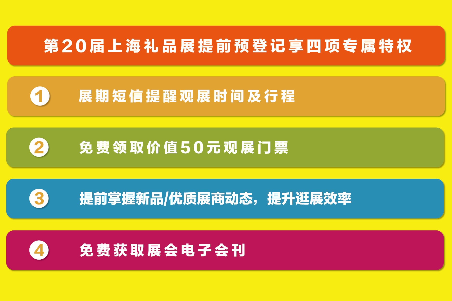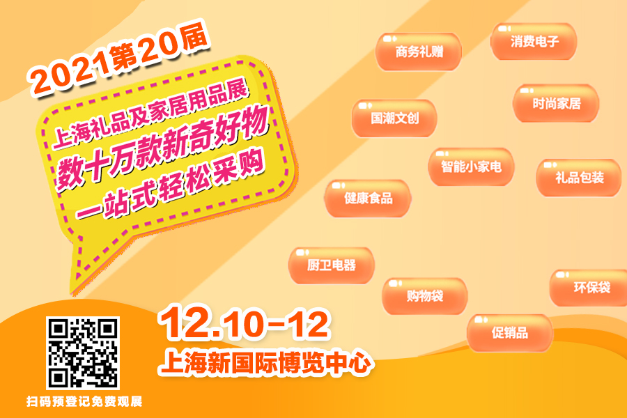 精彩的禮物不甚枚舉,節(jié)日禮品以時尚、創(chuàng)新、健康趨勢在禮品市場上持續(xù)走俏。如果您也想要抓住禮物經濟商機,完成精準采購,一定要來2021第20屆華禮展,12月10-12日相約在上海新國際博覽中心。關注“上海國際禮品展”公眾號在線預登記,免費領取價值50元參觀門票,一起開啟一場年終的節(jié)日禮品采購狂歡盛宴吧!