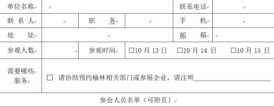 在榆林國(guó)際煤博會(huì)官網(wǎng)“www.cycechina.com”下載中心,下載附件“榆林國(guó)際煤博會(huì)團(tuán)體申請(qǐng)表”,填寫后回傳至xxxxxx郵箱。