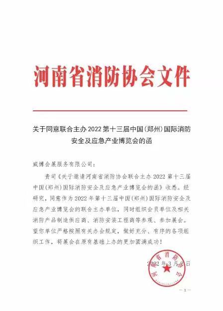 關(guān)于聯(lián)合主辦2022第13屆鄭州國(guó)際消防展的函