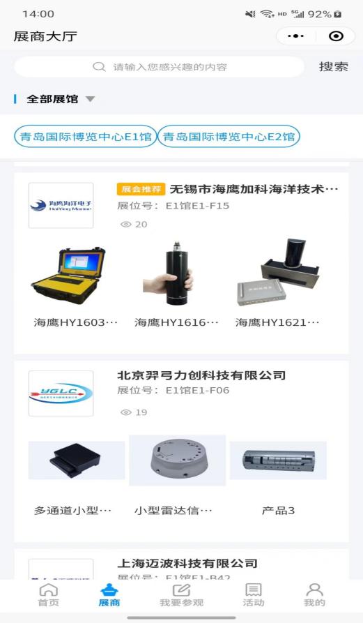 您可以通過展商秀平臺提前預(yù)覽2023(第八屆)青島國際海洋科技展覽會參展商、展品、主題論壇、同期活動等展會相關(guān)內(nèi)容,實時掌握青島??普棺稍?、預(yù)約洽談,報名參會!