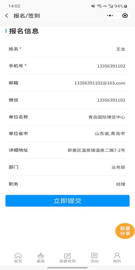 點擊展商秀底邊欄中央的【我要參會】按鈕,直接報名參加青島??普?,避免現(xiàn)場登記注冊麻煩。提前預(yù)登記的觀眾還可以享有免費午餐等展會特權(quán)!