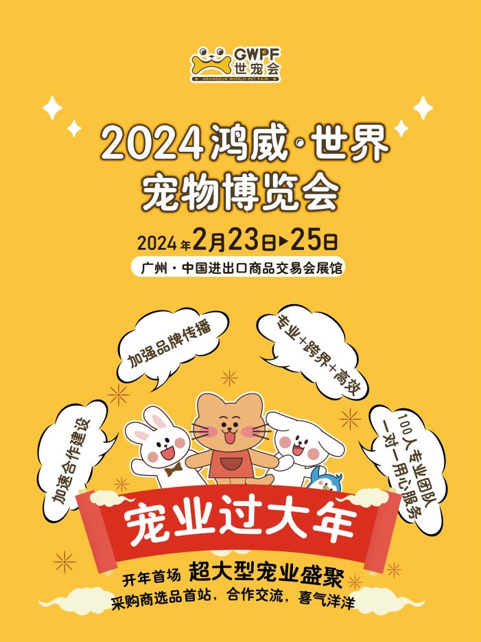 2024年2月23日-2月25日,2024鴻威•世界寵物博覽會(GWPF世寵會)廣州展