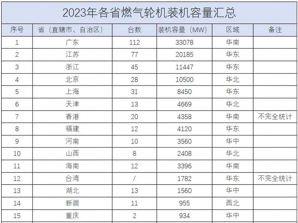 總臺數(shù)430!2023年度各省燃機(jī)臺數(shù)及裝機(jī)容量一覽