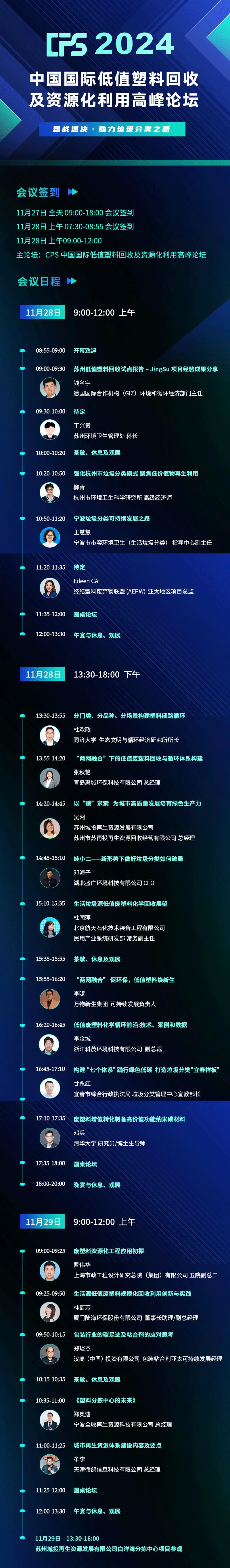 - 會(huì)議日程搶先看 | CPS 2024 中國國際低值塑料回收及資源化利用高峰論壇,11月28日-29日與您相約蘇州!
