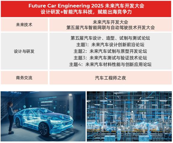 Future Car Engineering 2025未來汽車開發(fā)大會將聚焦智能網(wǎng)聯(lián)與自動駕駛技術(shù)、汽車設(shè)計(jì)、造型、試制與測試等核心的前沿技術(shù)與解決方案,匯聚全球汽車設(shè)計(jì)研發(fā)領(lǐng)域的精英,打造一場技術(shù)、生態(tài)、商業(yè)深度融合的國際盛會,預(yù)計(jì)將吸引1,000名中國及500名來自